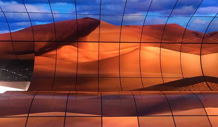 Ces écrans étaient exposés pendant la totalité du CES 2019. L’ensemble mesure environ 20 mètres de largeur, 6 mètres de hauteur et est composé de 260 écrans, dont 112 plats, 76 incurvés et 72 convexes. L’effet est saisissant : cela donne l’impression d’une vague immense qui submerge le spectateur.