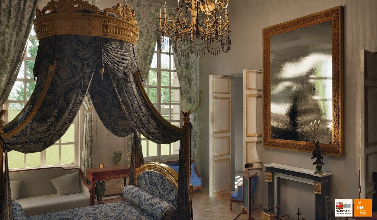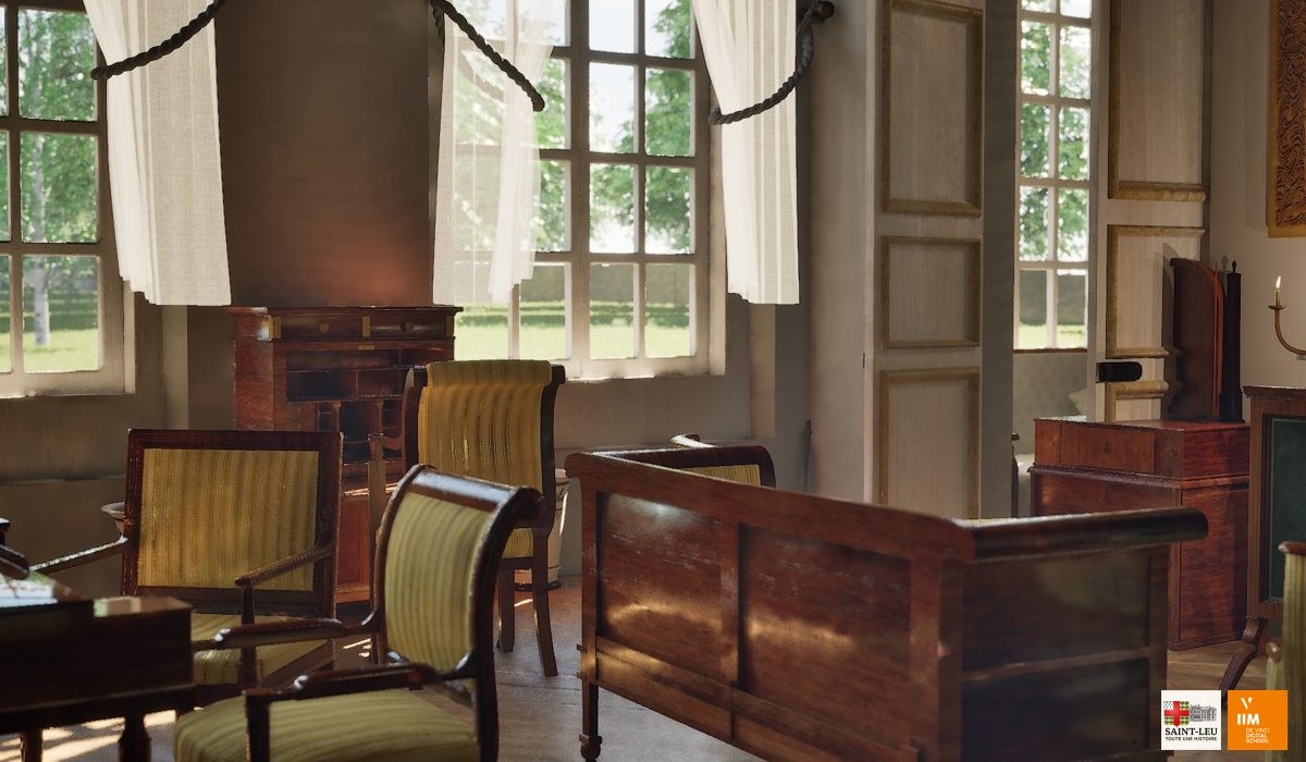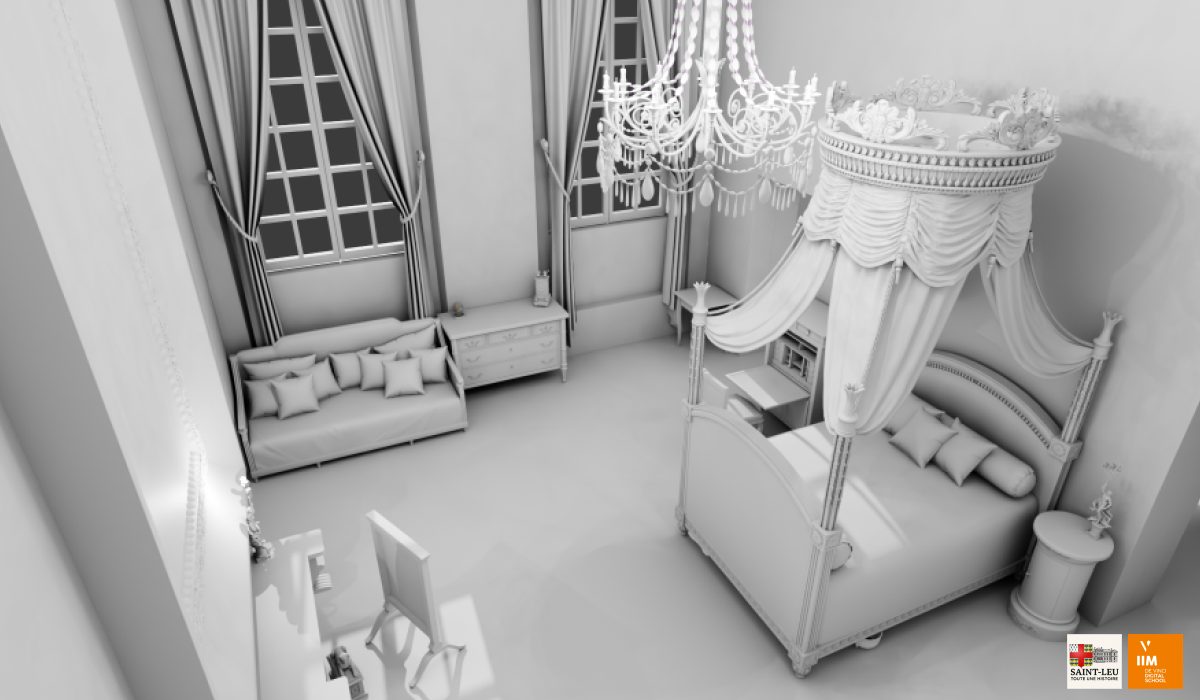 Les étudiants avaient pour mission de modéliser le château et son parc, de digitaliser les meubles et décorations du rez-de-chaussée selon les inventaires d’époque, et de reproduire les ambiances avec le plus grand réalisme possible.